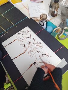 An amazing place 🌱 fantastic to be outside, on a hill with apple trees and magical light even in the winter time, the colours are bright and buzzing. Working with a very dedicated group of people who were willing to explore in all weather! 🌳Here are some of their amazing pieces – we were experimenting with materials to find a different way of ‘drawing’ ..
